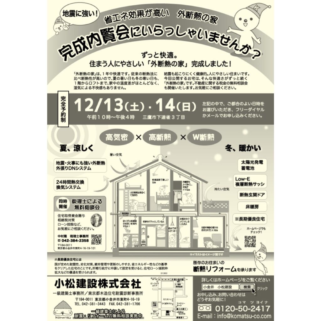 完成内覧会 12/13(土)・14(日) 三鷹市下連雀3丁目
